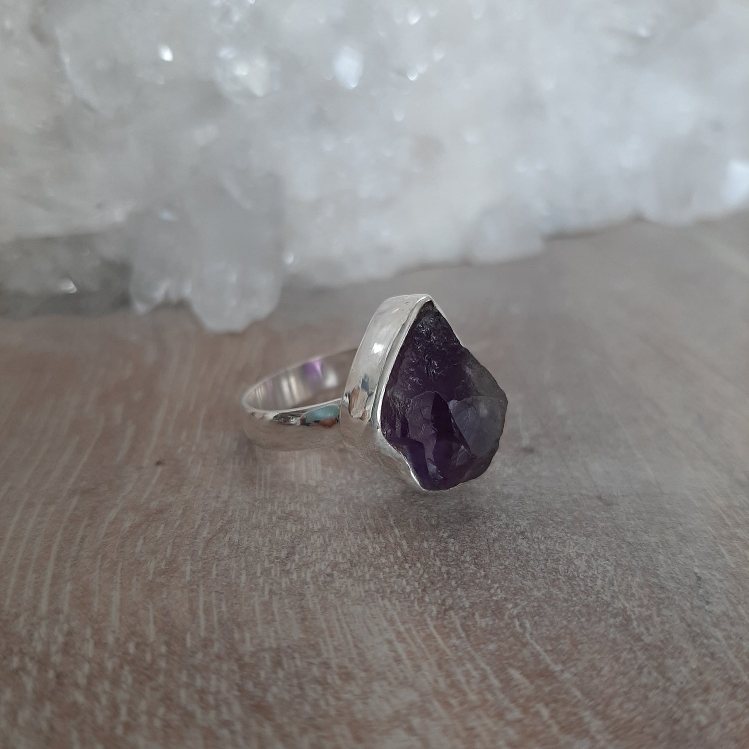 This Raw Amethyst and Sterling Silver Ring was hand picked for its high vibration, quality craftsmanship and resonating beauty.