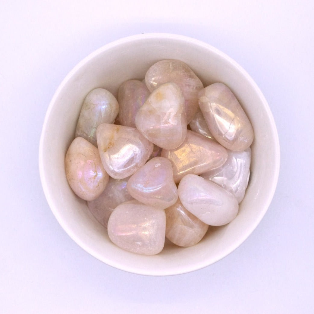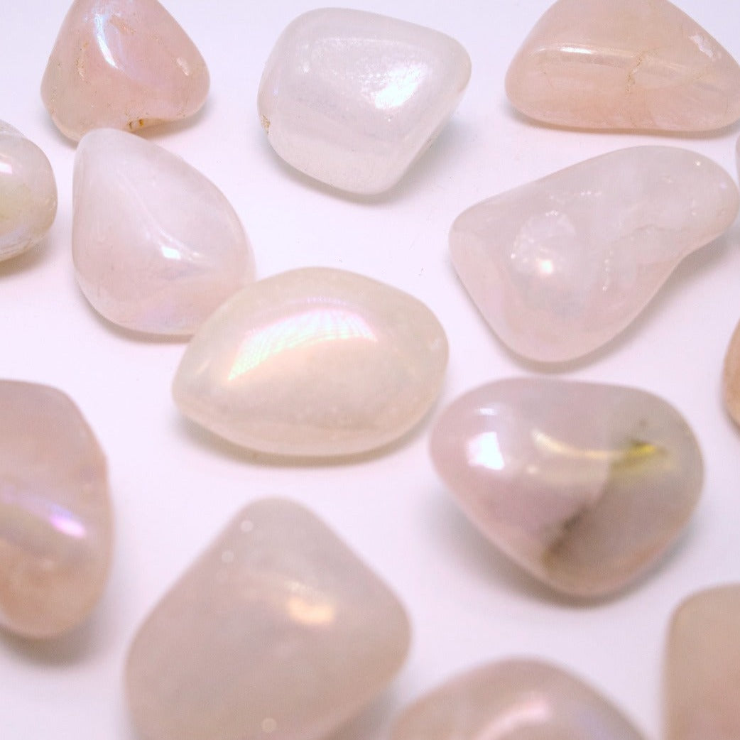 Carry this Angel Aura Rose Quartz Touchstone on your person, or keep it nearby. Tumbled stones are a great way to play with the energies of a beckoning crystal.