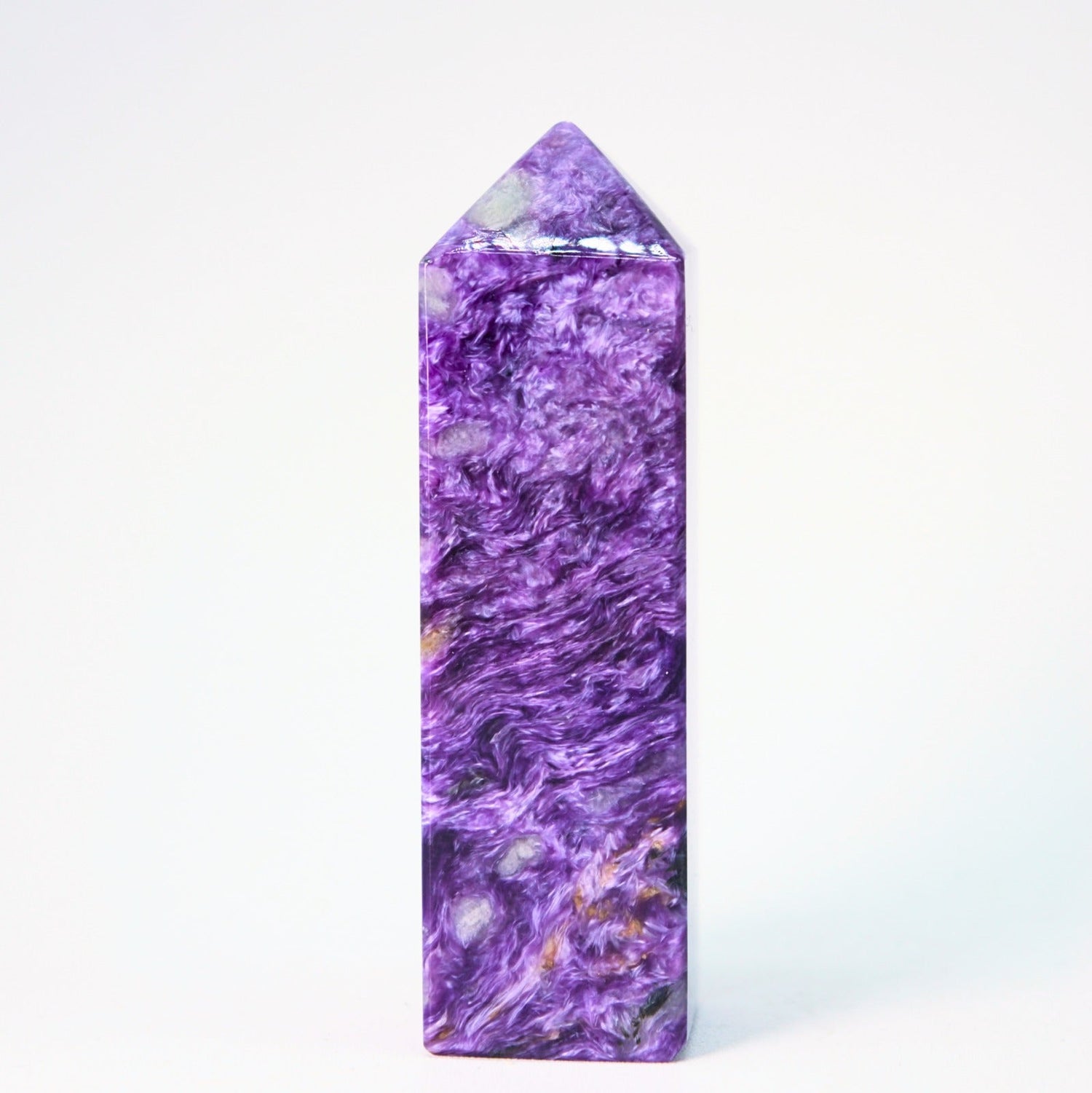 Work with a Charoite Polished Point to generate the powerful energies of this crystal. Points enhance the properties of any given stone, focusing and amplifying its energies at the tip and in your space.