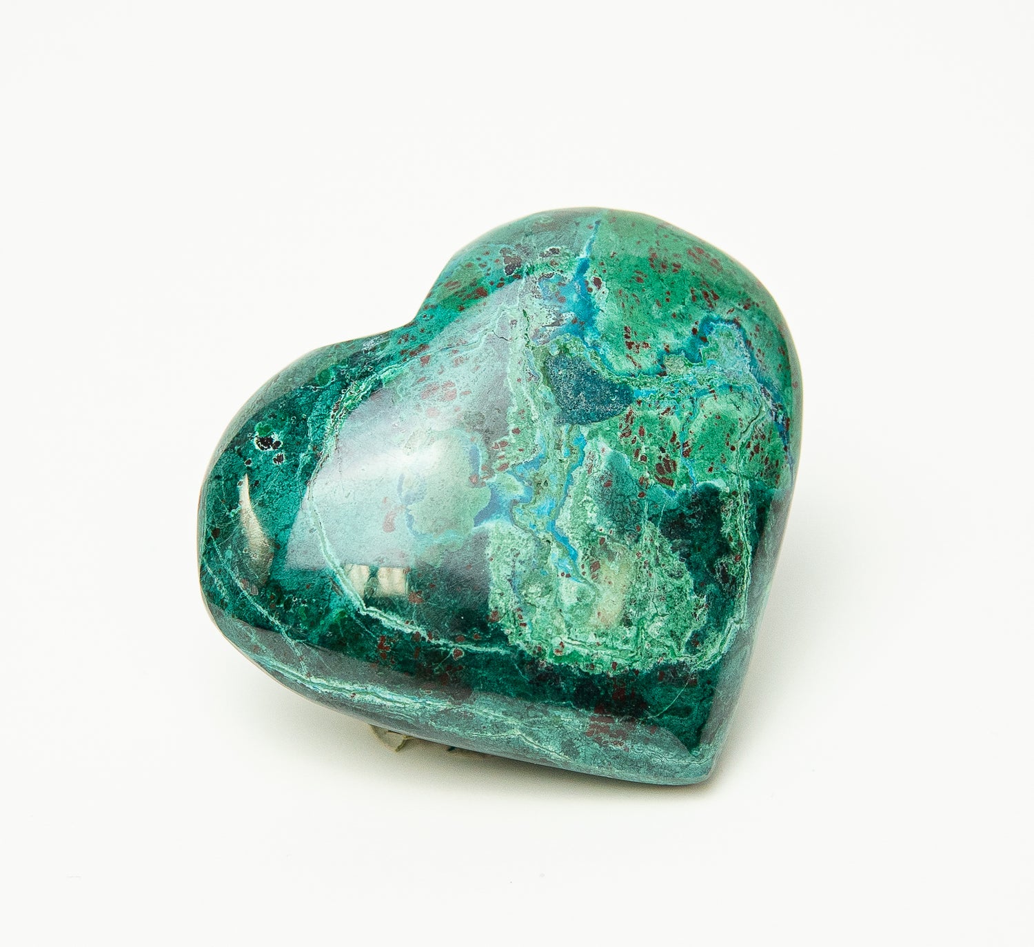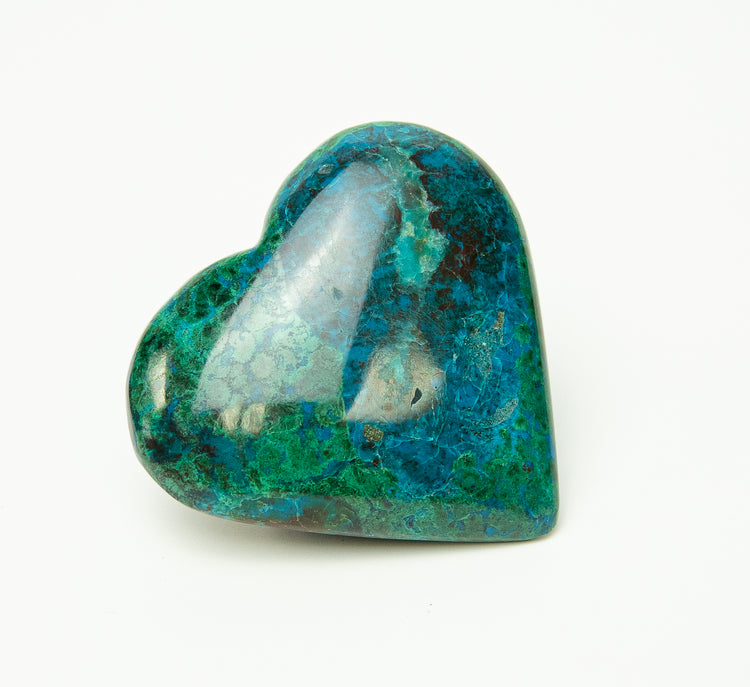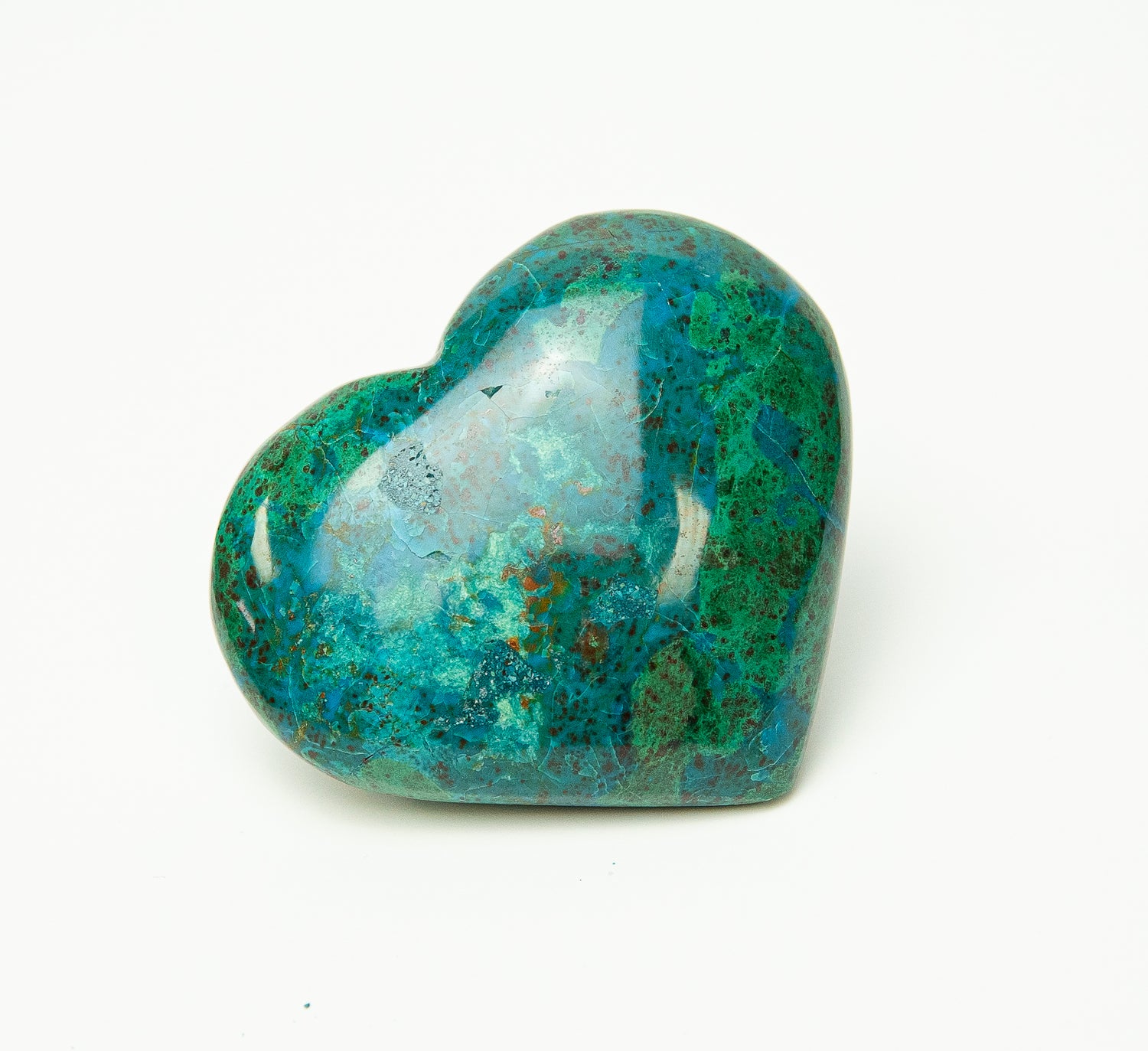High Quality and Rare Polished Chrysocolla Heart from Peru.