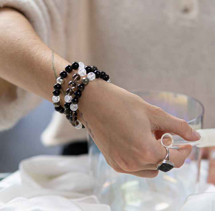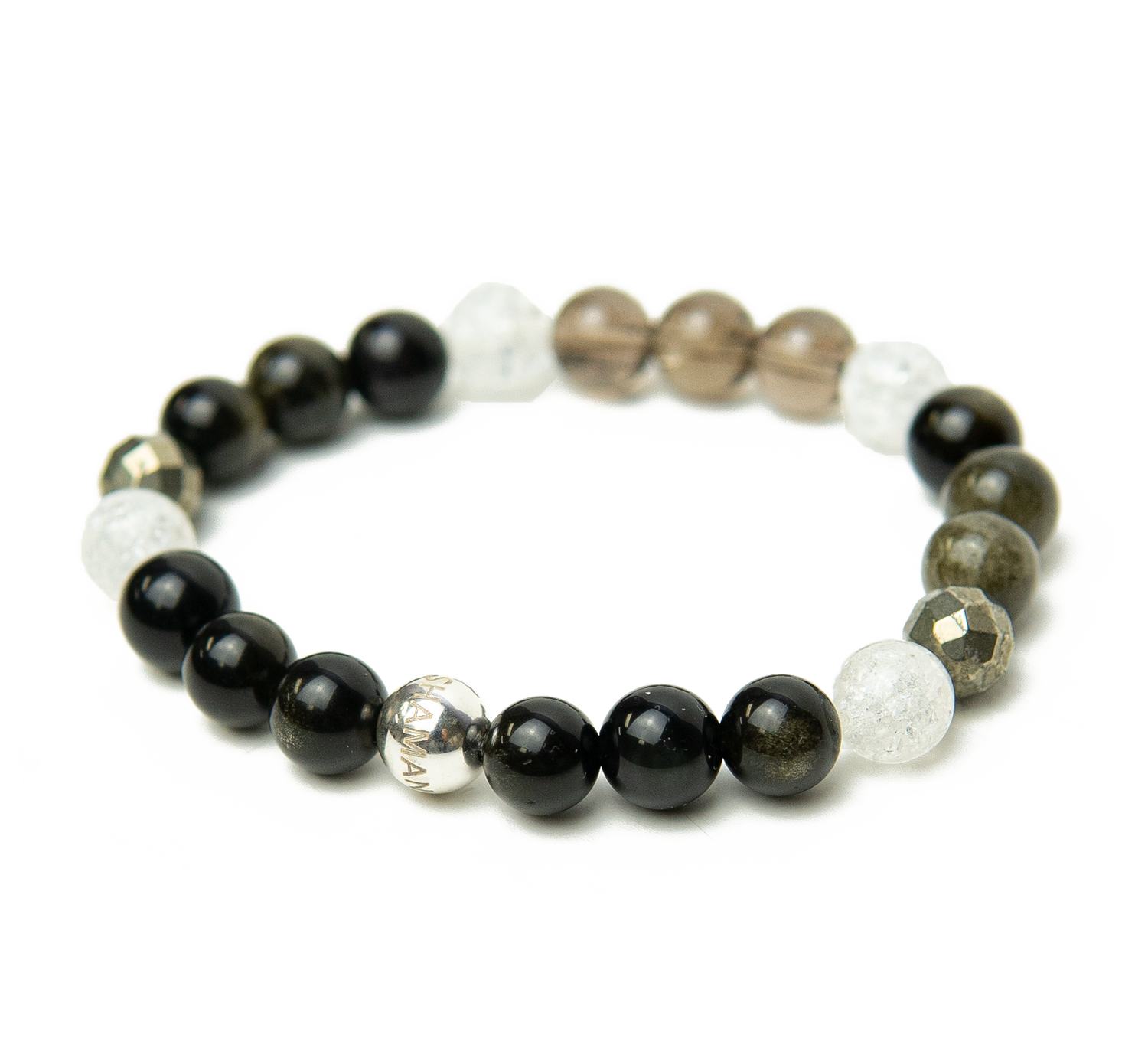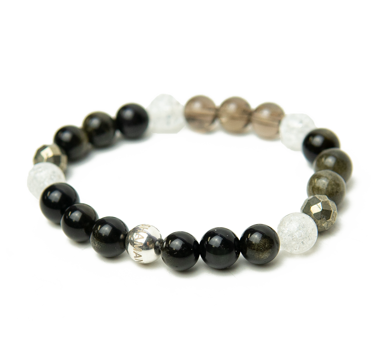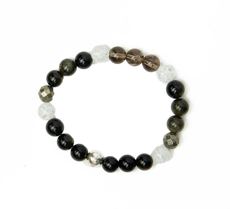 Sparkle with protective Diamond Gold Light with Pyrite, Gold Sheen Obsidian, Smokey Quartz, and Cracked Quartz. Wear it to amplify ascension, protection and good luck.