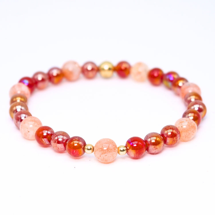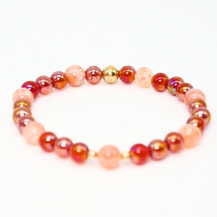 Featuring Sunstone and Angel Aura Carnelian, we designed this collection to help stoke the creative fires within. The element of fire symbolizes our inner light, passions, motivations, creativity, power and determination. It is a powerful source of energy that must be carefully tended to otherwise it may "burn out" or cause great destruction.