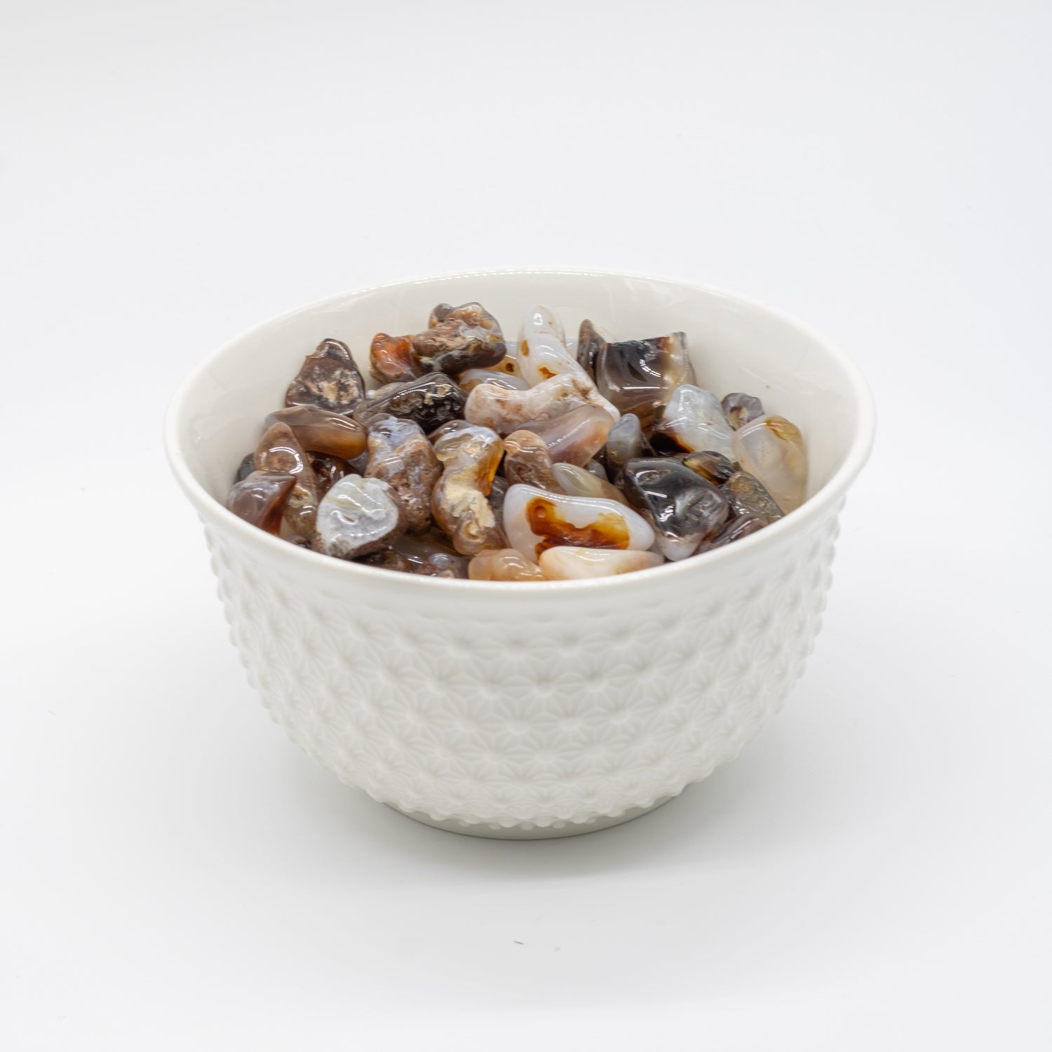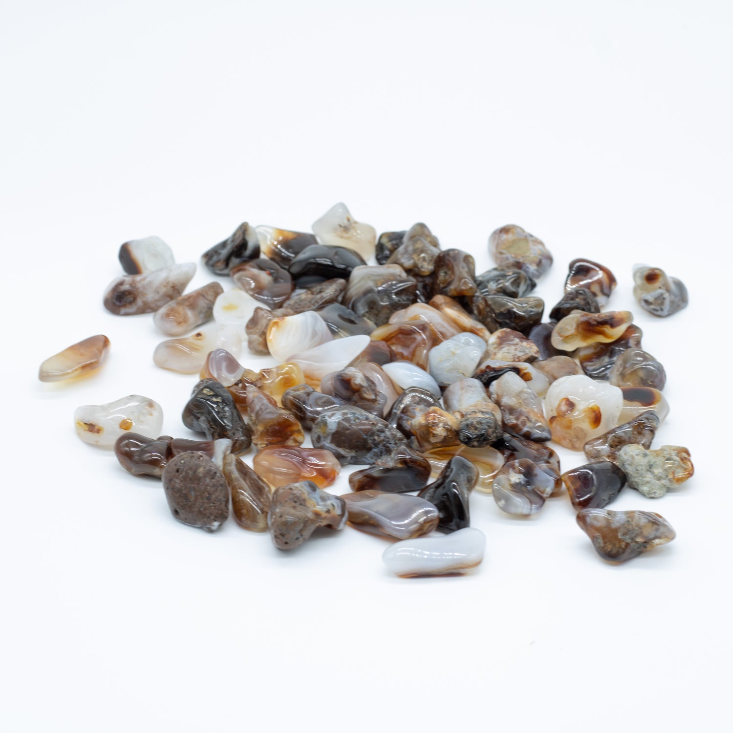 Fire Agate fires up the base chakra and stimulates vitality on all levels. It instills spiritual fortitude and aids the evolution of consciousness. Work with it to bring up inner problems for resolution.