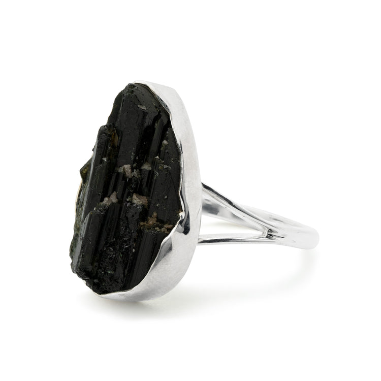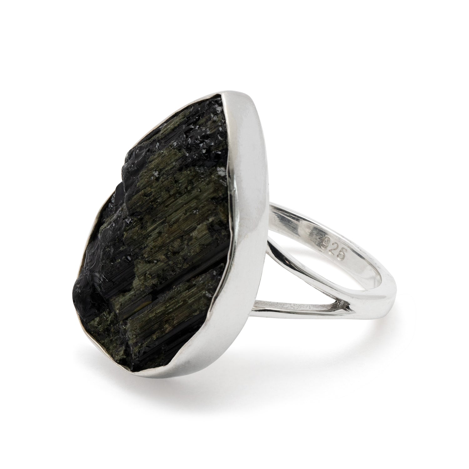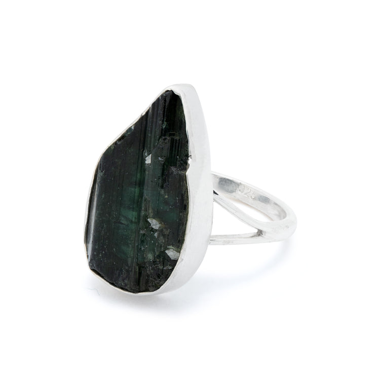 This Raw Green Tourmaline and Sterling Silver ring was hand picked for its high vibration, quality craftsmanship and resonating beauty.