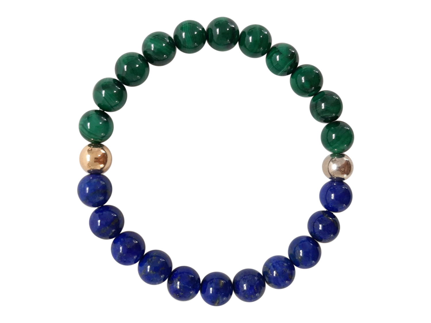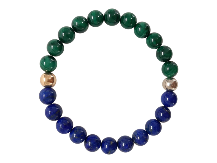Step into and speak your truth with this Men's bracelet, made with Malachite and Lapis Lazuli.