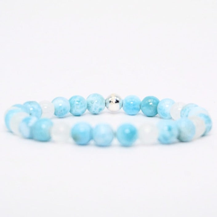 Featuring Rainbow Moonstone and Larimar, we designed this bracelet in gratitude to Water--the precious element that sustains all life. Purifying, renewing and nurturing us.