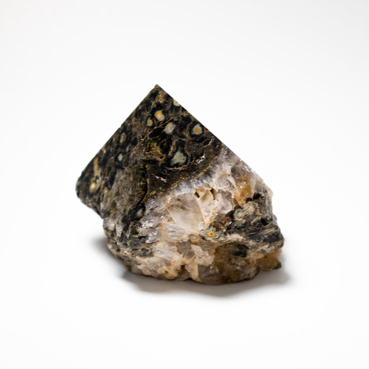Work with an Ocean Jasper Semi-Polished Point to generate the powerful energies of this crystal. Points enhance the properties of any given stone, focusing and amplifying its energies at the tip and in your space.