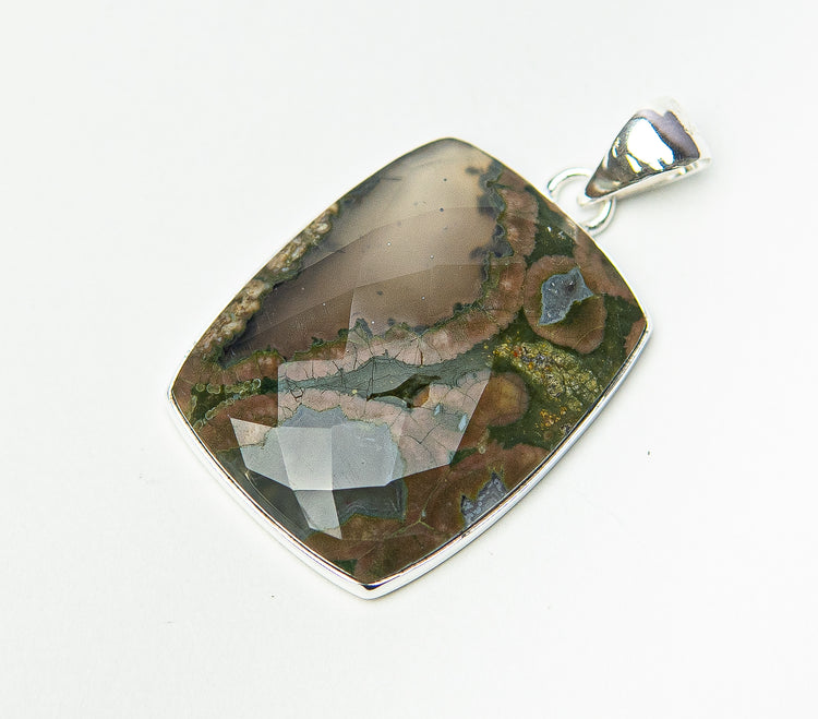 This Polished Rhyolite and Sterling Silver pendant was hand picked for its high vibration, quality craftsmanship and resonating beauty.