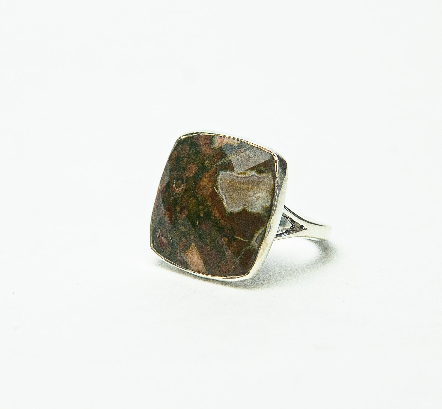 This Polished Rhyolite and Sterling Silver ring was hand picked for its high vibration, quality craftsmanship and resonating beauty.
