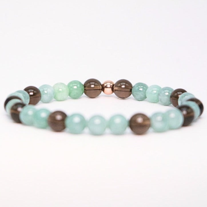 Burmese Jade helps to heal and open the Heart Chakra, Smoky Quartz helps to ground and connect us to the Earth (Base & Root Chakras)