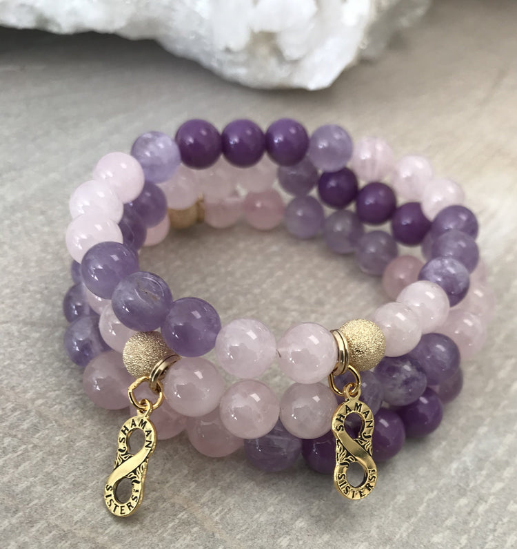Attract your Soulmate with the aid of this Phosphosiderite, Lavender Amethyst and Rose Quartz bracelet.