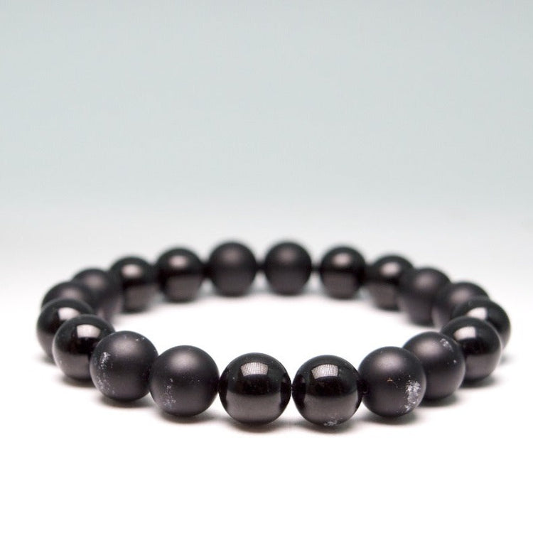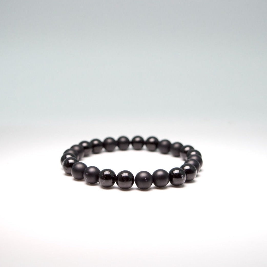 This intentionally hand-crafted bracelet is made with Black Onyx and Black Tourmaline.