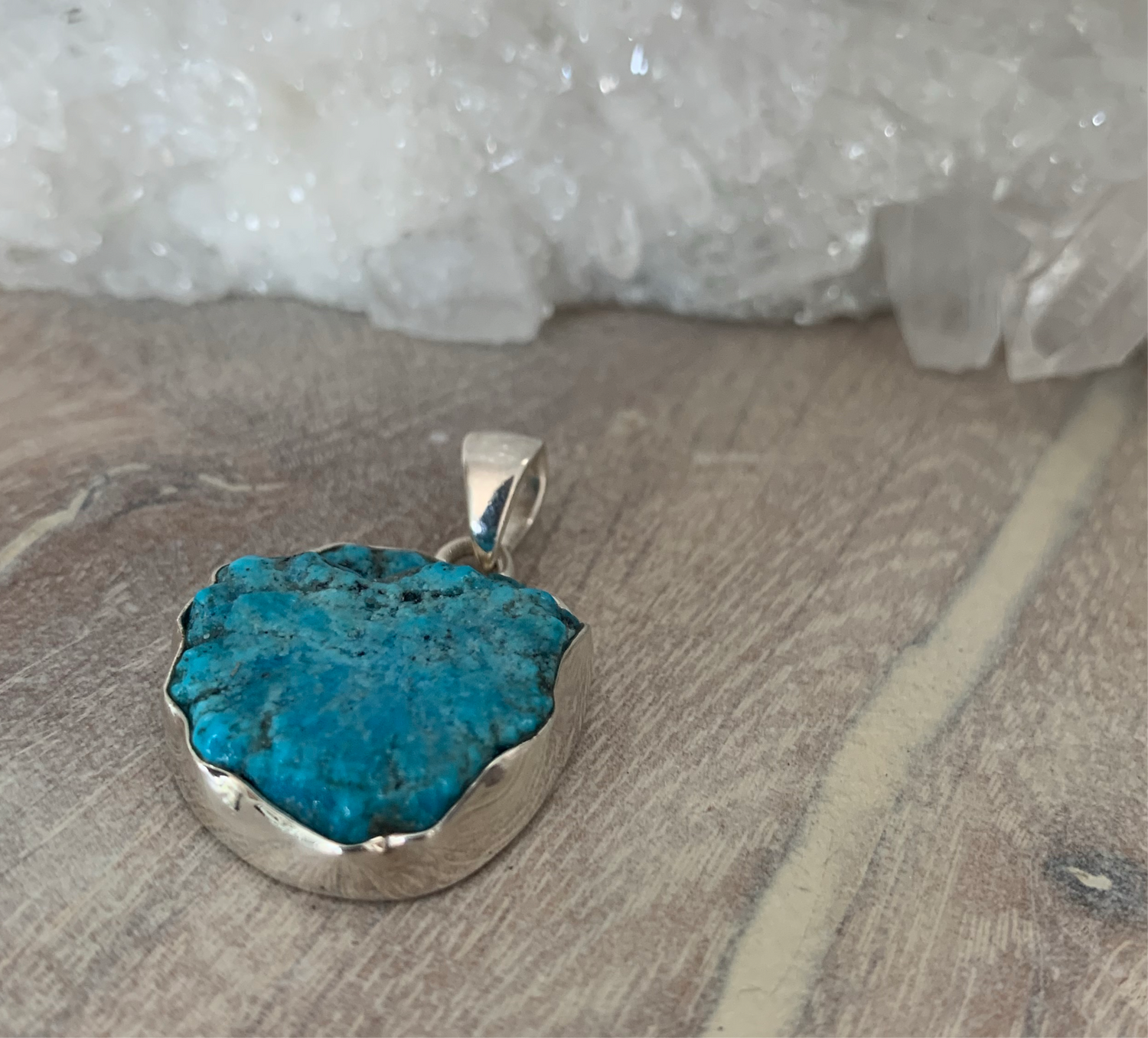 This Raw Turquoise and Sterling Silver Pendant was hand picked for its high vibration, quality craftsmanship and resonating beauty.
