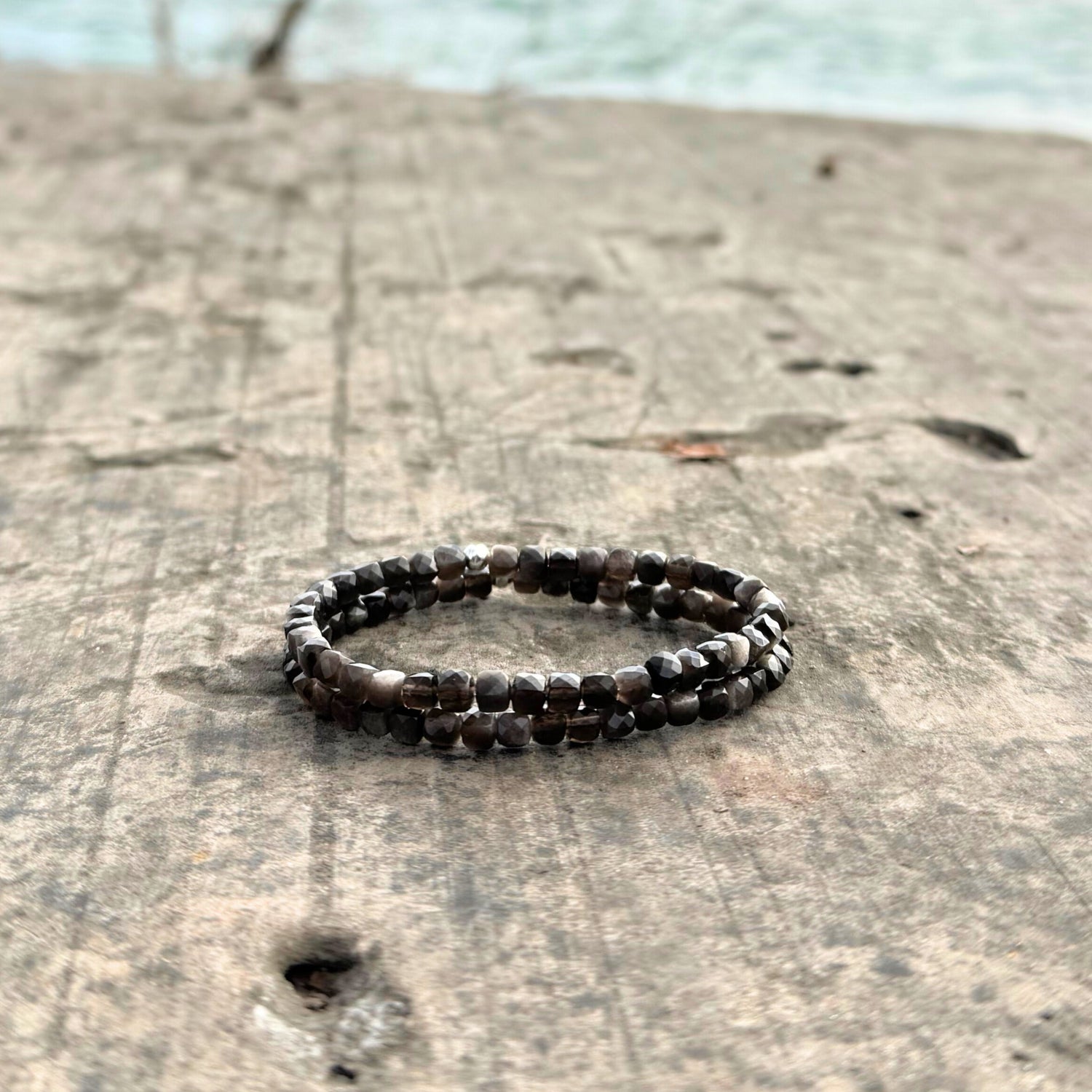 This intentionally hand-crafted bracelet by Rebecca is made with Silver Sheen Obsidian which is known as a protective stone. Obsidian is a part of our Year of the Dragon Collection.
