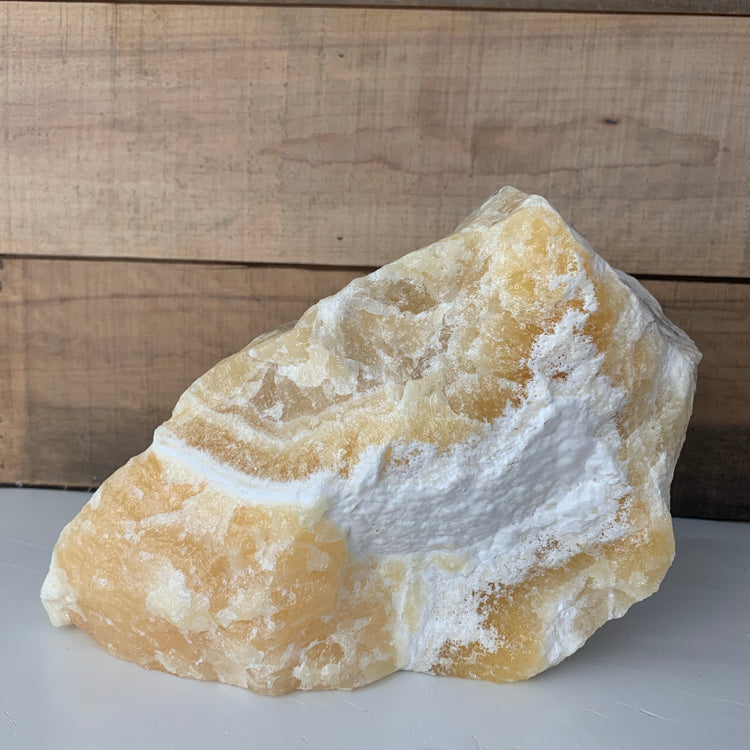 Partly polished Yellow Phantom Calcite Home Decor Piece.